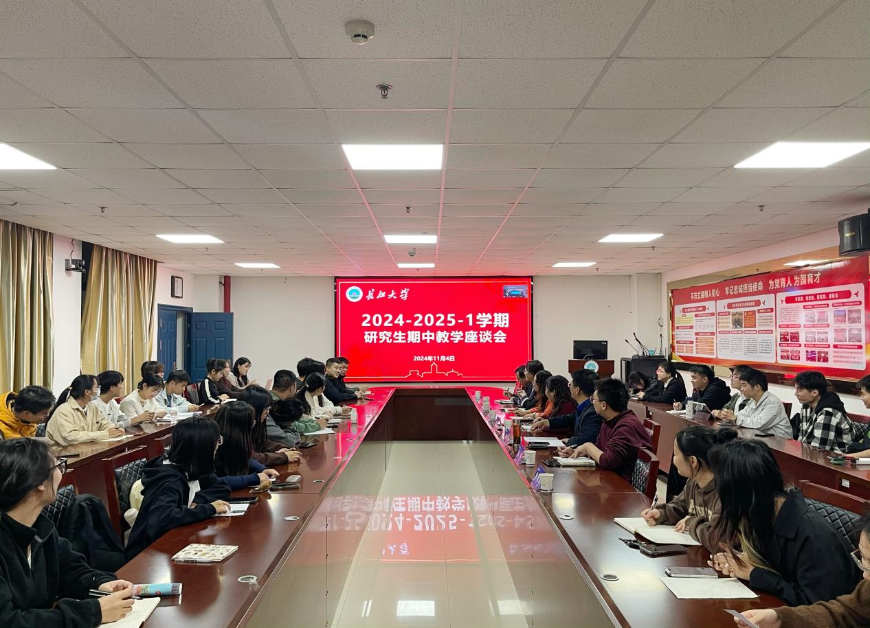 (通讯员 周汪洋 侯鑫可)2024年11月4日晚上19:00,太阳成集团tyc151在文科楼505会议室召开了2024-2025年第1学期研究生期中教学座谈会。参加此次会议的有副经理裴潇教授、研究生管理团队、部分教师代表和50余名研究生代表。此次座谈会采用线上线下相结合的形式,旨在了解研究生生活学习情况,增进师生沟通交流,规范研究生教学管理,切实提高教学质量。