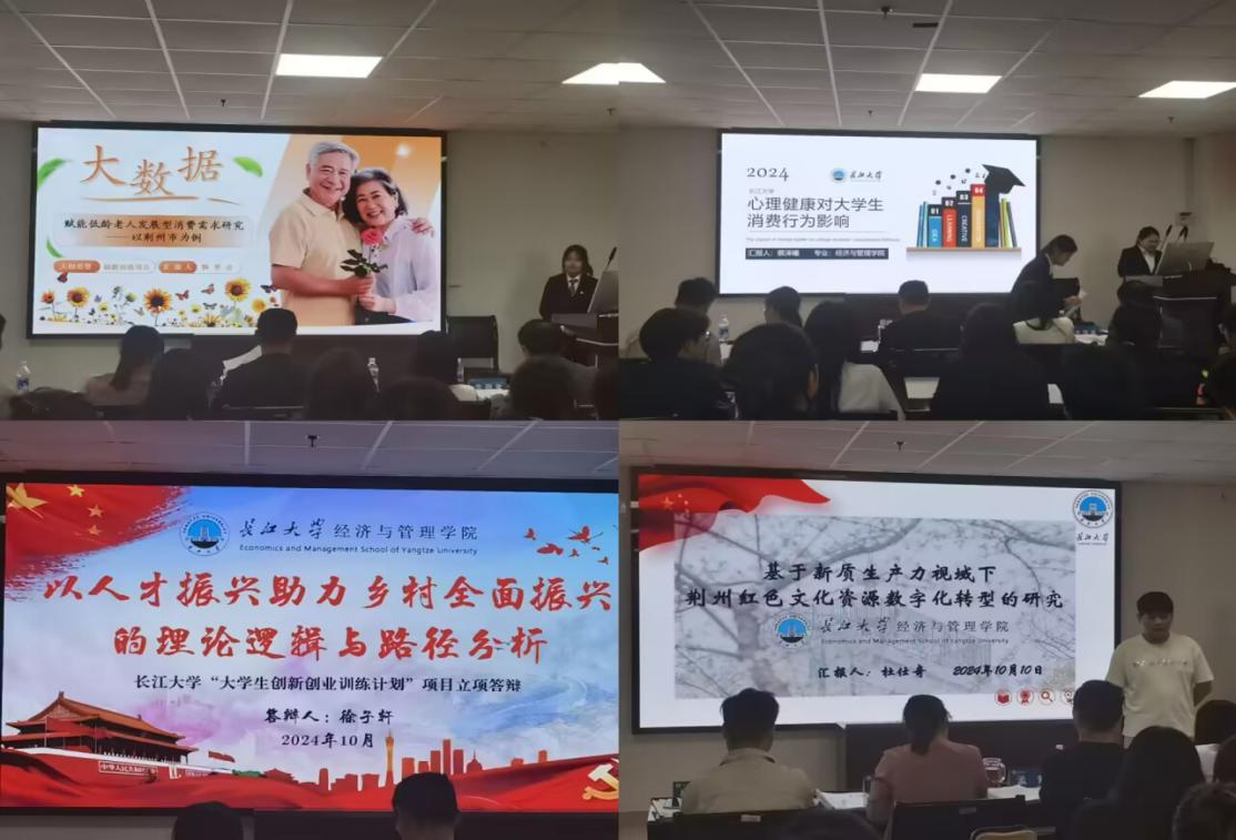 答辩过程中,35个团队依次进行项目PPT展示,各团队聚焦城乡融合,农业绿色发展、“银发”经济、数字化转型、乡村振兴、碳市场、新能源、流浪动物保护众多社会热点问题,与自身专业知识结合,根据实地调查、信息采集和多方资料参考,逐步从该项目的研究背景、研究内容、研究意义、研究成果等方面进行具体论述,五位评委老师依据各个项目的研究内容、方法提出问题,进行专业性指导,鼓励各个团队继续完善项目研究,做出更好的成绩。