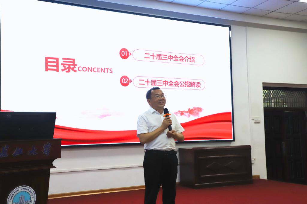 会上,樊帆首先就党的二十届三中全会的召开背景、重要意义及主要议程进行了全面介绍,同时介绍了对我国经济与社会发展有重大影响的十一届三中全会、十二届三中全会、十四届三中全会、十八届三中全会,使教职工们深刻感受到中国特色社会主义事业在改革开放大潮中的蓬勃发展。