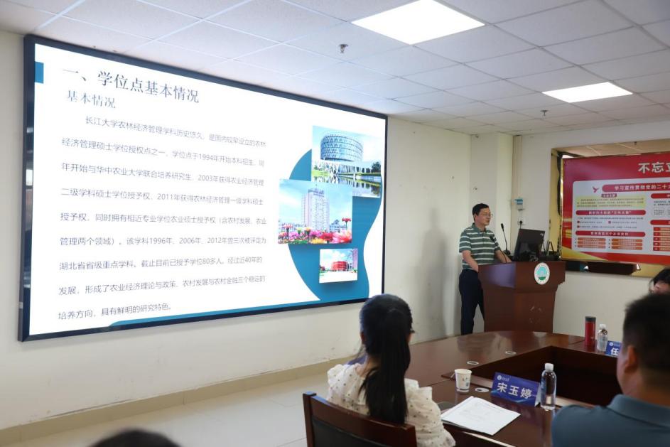 副经理何蒲明教授从农林经济管理硕士学位授权点基本情况、存在的问题和持续改进计划等方面详细汇报了公司农林经济管理硕士学位授权点的建设进展。