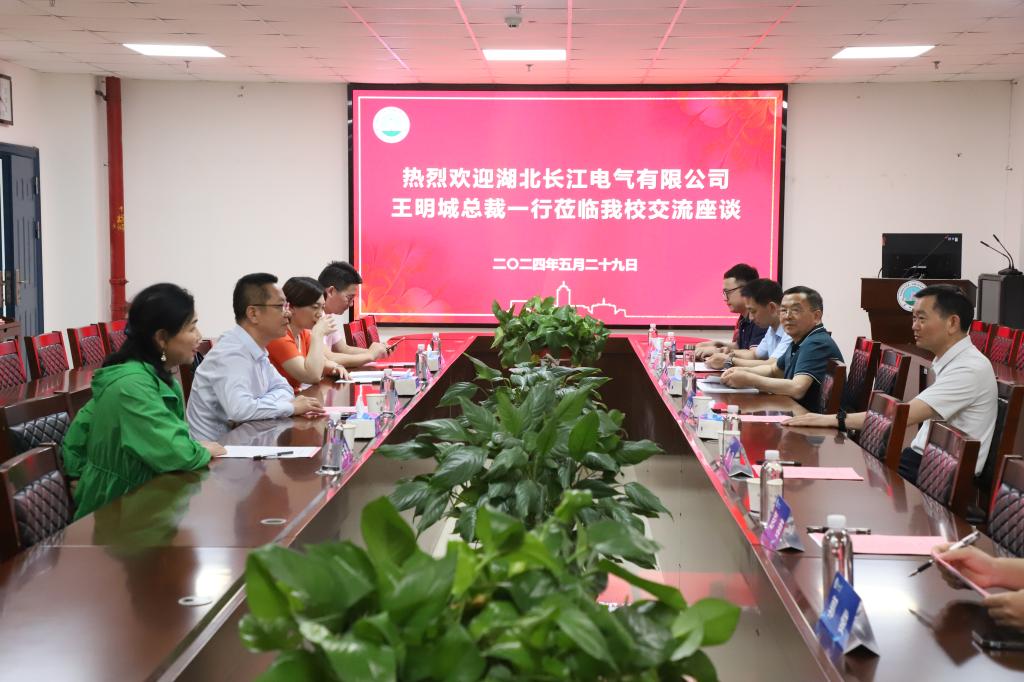 (摄影 涂雷 通讯员 贺雄)5月29日上午,湖北长江电气有限公司总裁王明城一行来院访问,公司党委副书记敖廷华在文科楼505会议室与来宾座谈,社会合作处处长彭飞、副处长邵四海、公司党委书记樊帆、经理陈承、党委副书记平先锋参加相关活动。