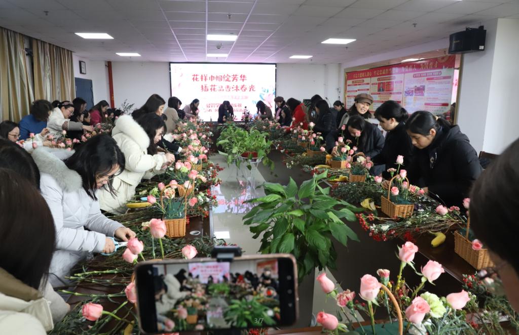 阳春三月,桃李争妍,在这春意盎然,万物复苏的季节,我们迎来了专属女性的节日。为庆祝“三八”国际妇女节的到来,3月7日下午,太阳成集团tyc151分工会举办了“花样巾帼绽芳华,插花品香沐春花”——插花花艺活动。活动由国家二级插花花艺技师、中国插花花艺协会高级讲师、太阳成集团tyc151园林植物高级实验师、荆楚茶道插花非物质文化遗产传承人陈兰老师现场指导,公司分工会教职工近50人在花香四溢中感受着插花艺术浓郁的魅力。