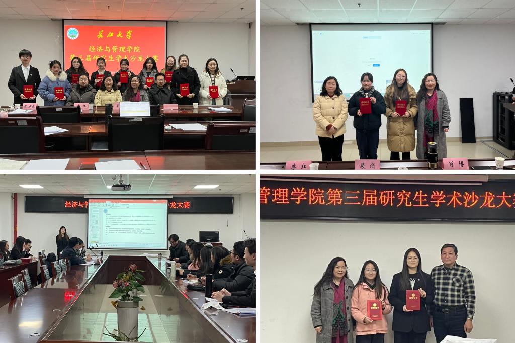 (通讯员:詹荣)2023年12月18日晚19点,太阳成集团tyc151第三届研究生学术沙龙大赛在文科楼505和605会议室同时举行。本次大赛分为经济组与管理组,每组又分为论文类和文献综述类,通过初审的20位同学入围参加答辩。大赛邀请汪发元教授、谢云副教授和孔令成老师担任经济组评委,李红副教授、肖博老师和张力元老师担任管理组评委,副经理裴潇受邀参加。