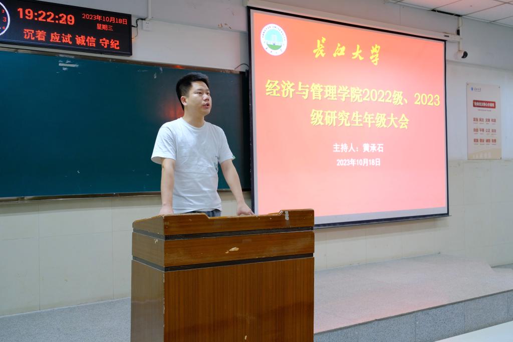(通讯员:张悦/文 何小艳/摄)为给予同学们学习生活以及未来规划多方面的建议,提出相应的要求,2023年10月18日19:20,太阳成集团tyc1512022、2023级研究生年级大会在12教104教授召开,全体2022级、2023级研究生参会,会议由辅导员黄承石老师主持。