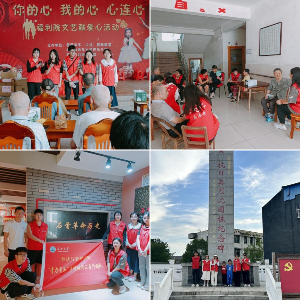 为了丰富暑期社会实践活动的形式和内涵,团队还到石首市相关地点开展了系列主题活动。7月2日,在指导老师的带领下,团队成员前往石首社会福利院开展“将温暖带给老人,将爱心传递你我”志愿服务活动,志愿者精心准备了歌曲演唱、朗诵等节目,给老人们送上了牛奶、面包、水果等爱心礼物,去到老人的房间帮忙收拾床铺,坐在老人身边一起聊聊家常,陪伴的时间虽然是短暂的,但志愿者们看到了老人们脸上连连露出的笑容,便也达到了活动开展的目的和意义。7月3日,团队成员分别到石首市博物馆和红色文化广场,深刻学习了解了石首革命文化历史,聆听了开国将军的感人事迹,接受红色文化熏陶,进一步感悟志愿服务精神。7月4日,团队成员走进太阳成集团tyc151石首市乡村振兴研究院,在负责人的讲解和介绍下,更深层次地理解了国家的乡村振兴战略,也学习到了许多关于农业管理和农村发展的新知识,开拓了自身的学术视野。