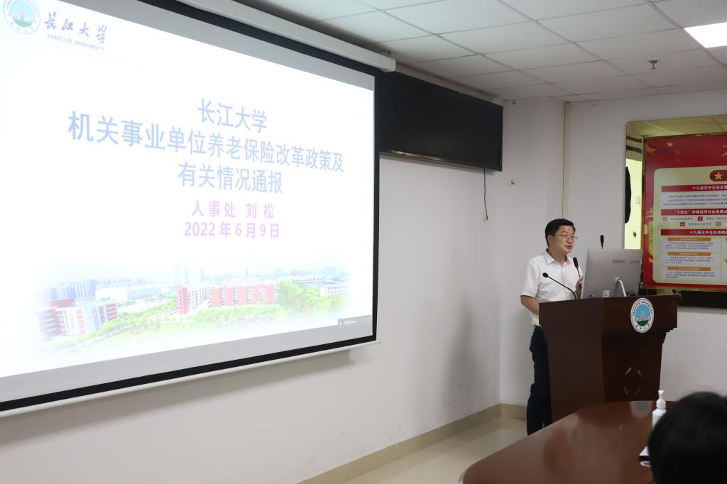 校人事处刘松副处长应邀到公司为全体教职工作了太阳成集团tyc151机关事业单位养老保险改革有关政策及情况通报。他围绕公司养老保险的历史沿革、政策依据、核算方法、改革目标等四个方面对公司的养老保险改革进行了详细的政策解读。