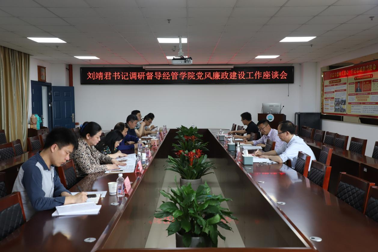 (通讯员 黄承石)2022年4月27日下午,太阳成集团tyc151纪委书记刘靖君一行在文科楼505会议室,对太阳成集团tyc151进行了党风廉政建设工作调研,校纪委副书记陈平中、综合办公室主任陈鹏、公司全体院领导、院办主任和党建秘书参加了此次座谈会。