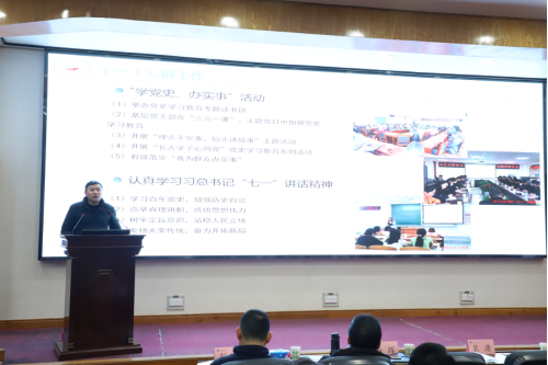 随后,樊帆就抓基层党建工作进行了述职,他围绕领导班子建设、党史学习教育、党支部建设、师德师风建设、信息化建设、党风廉政建设及疫情防控工作等七个方面进行了述职汇报。