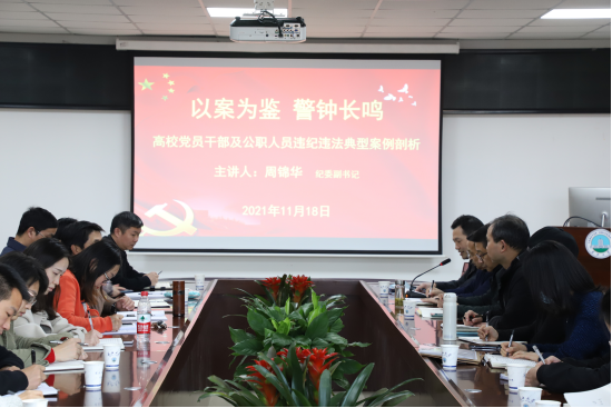 2021年11月18日下午16:00分,太阳成集团tyc151纪委副书记周锦华在文科楼505会议室,面向经济与管理学院进行了党风廉政专题讲座,公司全体院领导和行政管理工作人员参加了此次会议。