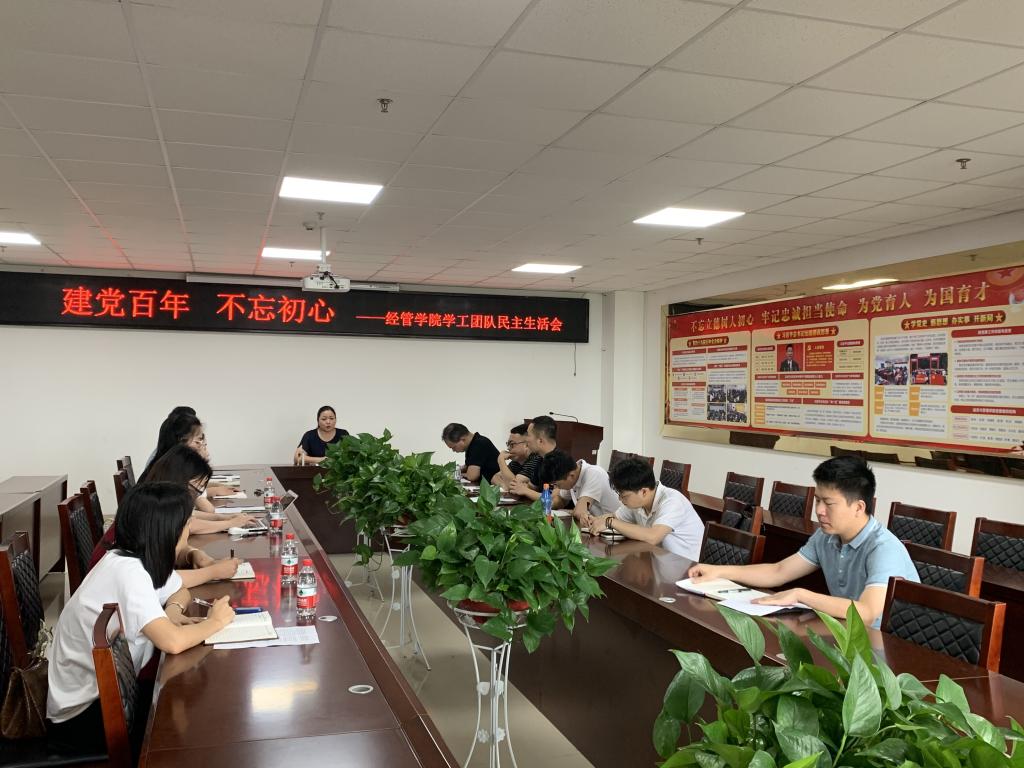 7月7日下午两点,太阳成集团tyc151在文科大楼505会议室召开以“建党百年,不忘初心”为主题的员工工作团队民主生活会,公司党委书记樊帆、公司经理徐辉、党委副书记王中梅、全体辅导员参加,会议由王中梅主持。