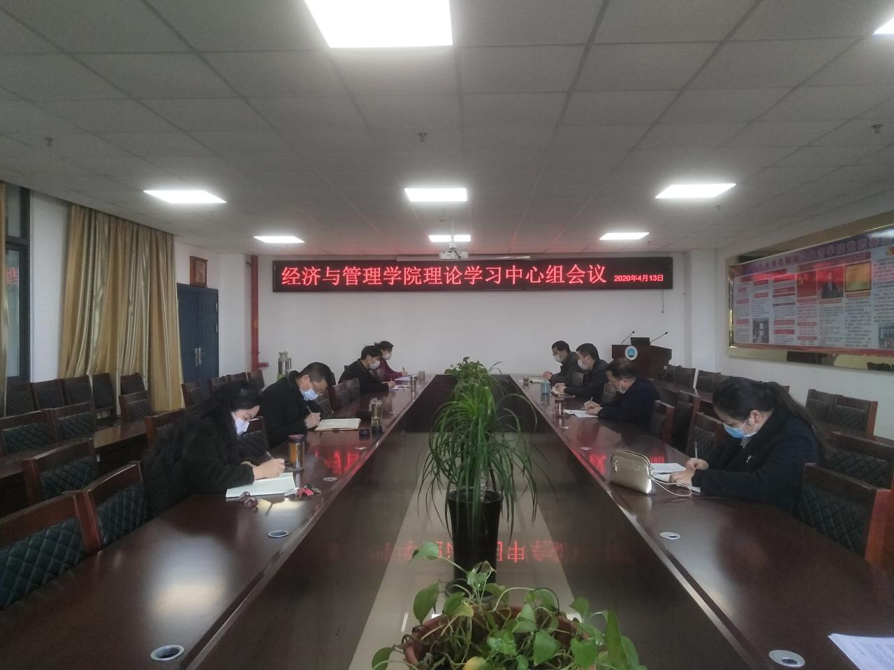 2020年4月13日上午,经济与管理公司党委理论学习中心组在文科楼505会议室开展了集中学习。公司党委书记樊帆主持会议,理论学习中心组的全体成员参加了学习。