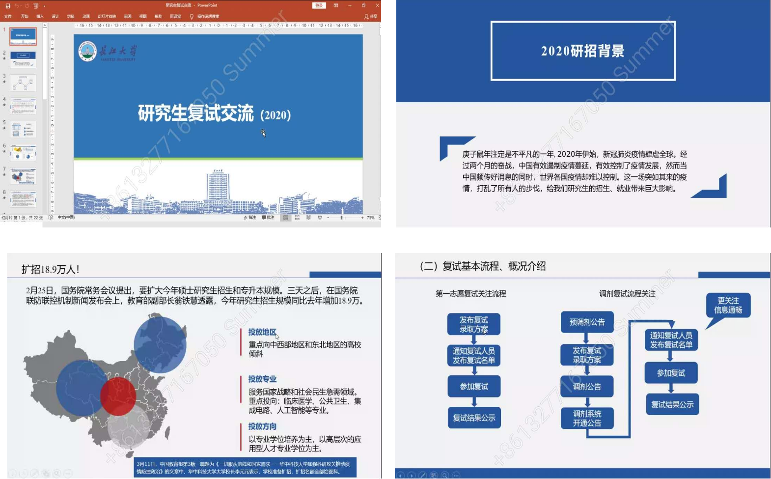 何经理主要围绕研究生复试的技巧进行交流。以2019年的考研复试案例进行分析。何经理特别提醒,在复试时,大家要能够主动介绍自己的个人特长和专业优势、自己公司的专业特色和学科特色。既要有扎实的专业功底,也要使自己能够脱颖而出。