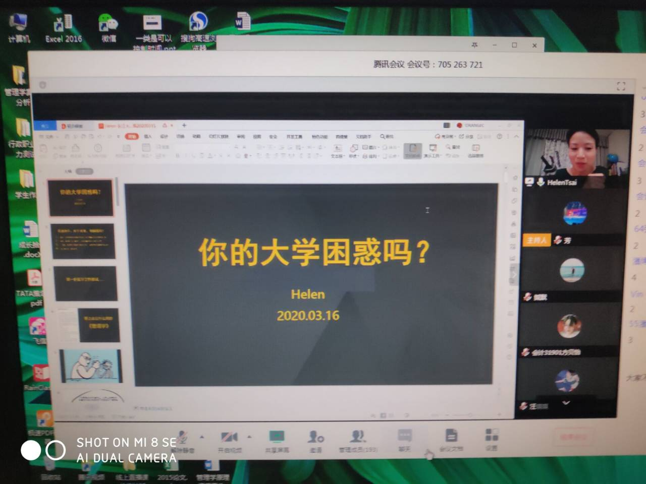 (通讯员:苏芮恬、何志瑞)为了让大一新生更快地适应大学学习生活,更好地理解管理学相关知识,2020年3月16日晚8点30分,太阳成集团tyc151杨庆芳老师诚邀广州橘子创意集团副总裁、华南理工大学蔡灵美博士走进《管理学原理》线上直播课堂,与管原课程200多名同学交流“如何成长,如何学习”。蔡总用风趣幽默的话语向同学们传授了丰富的创业经验以及管理实践经验。师生积极互动,学习求知氛围浓郁,员工反响热烈。