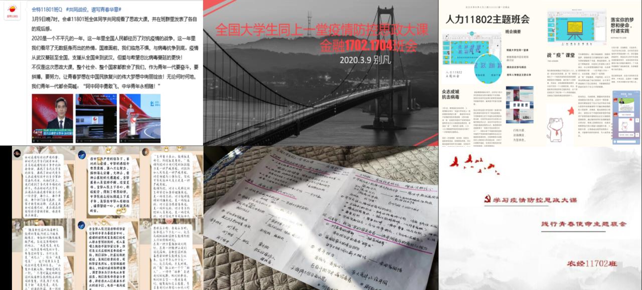 “和光同尘,与时舒卷。”这堂不一样的思政课,使得师生们更加坚定了在以习近平同志为核心的党中央坚强领导下打赢这场疫情防控人民战争、总体战、阻击战的信心和决心,深刻认识了中国抗疫彰显的中国共产党领导和中国特色社会主义制度的显著优势。为了充分加强交流,在辅导员、班主任的组织下,各班同学在课后召开线上的班级会议并在班群里分享讨论。大家意识到,只有把自己的小我融入祖国的大我、人民的大我,让青春走出孤芳自赏的小我,才能够与时代同步伐,与人民共命运。