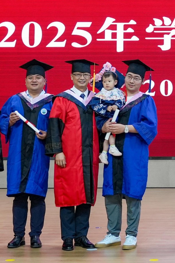 更有温情一幕感动全场,27岁硕士毕业生,从经理陈承教授手中接过学位证书时,怀中的萌娃瞬间成为全场焦点。