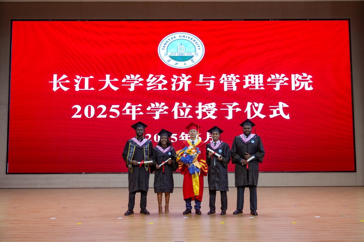 温馨而庄重的一幕格外引人注目,公司来自非洲的职工毕业生代表在授学位后,将鲜花和写有“我爱长大”、“我爱经管”的打卡牌带到台前与董事长亲切合影,用镜头定格下他们在公司学有所成的荣耀瞬间。