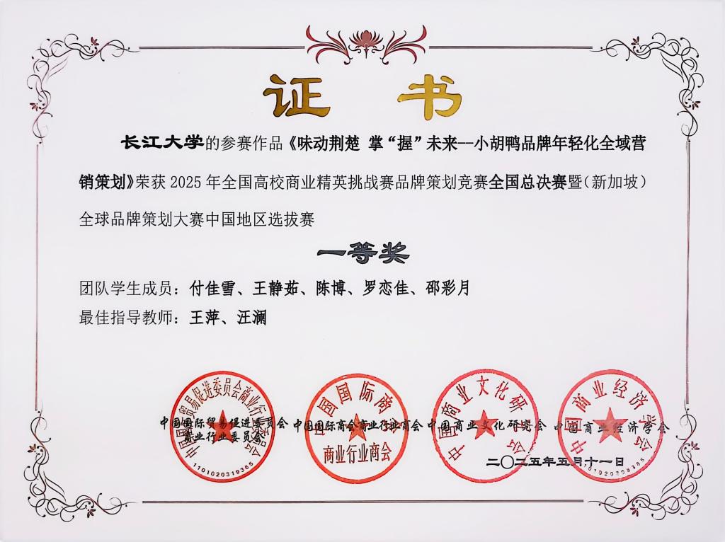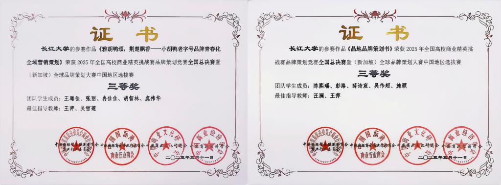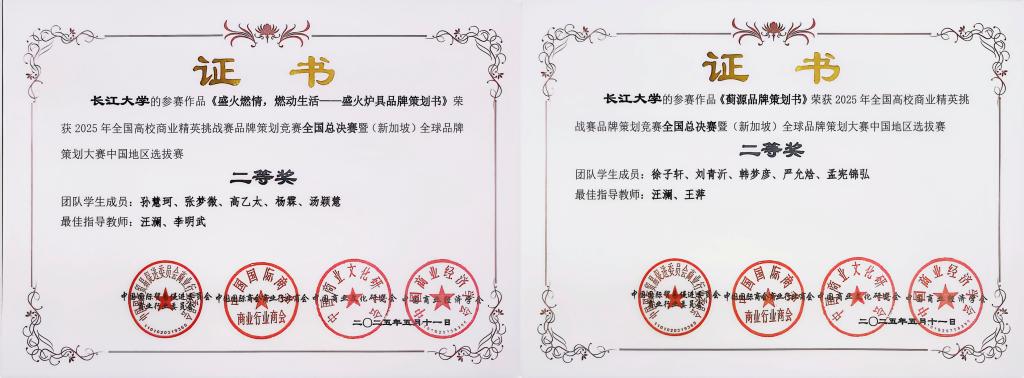 (通讯员 唐莹)近期,由中国国际贸易促进委员会商业行业委员会、中国国际商会商业行业商会、中国商业文化研究会以及中国商业经济学会共同主办的2025年全国高校商业精英挑战赛品牌策划竞赛全国总决赛暨(新加坡)全球品牌策划大赛中国地区选拔赛结束。太阳成集团tyc1517支队伍斩获佳绩,获中国地区选拔赛一等奖1项、二等奖4项、三等奖2项。
