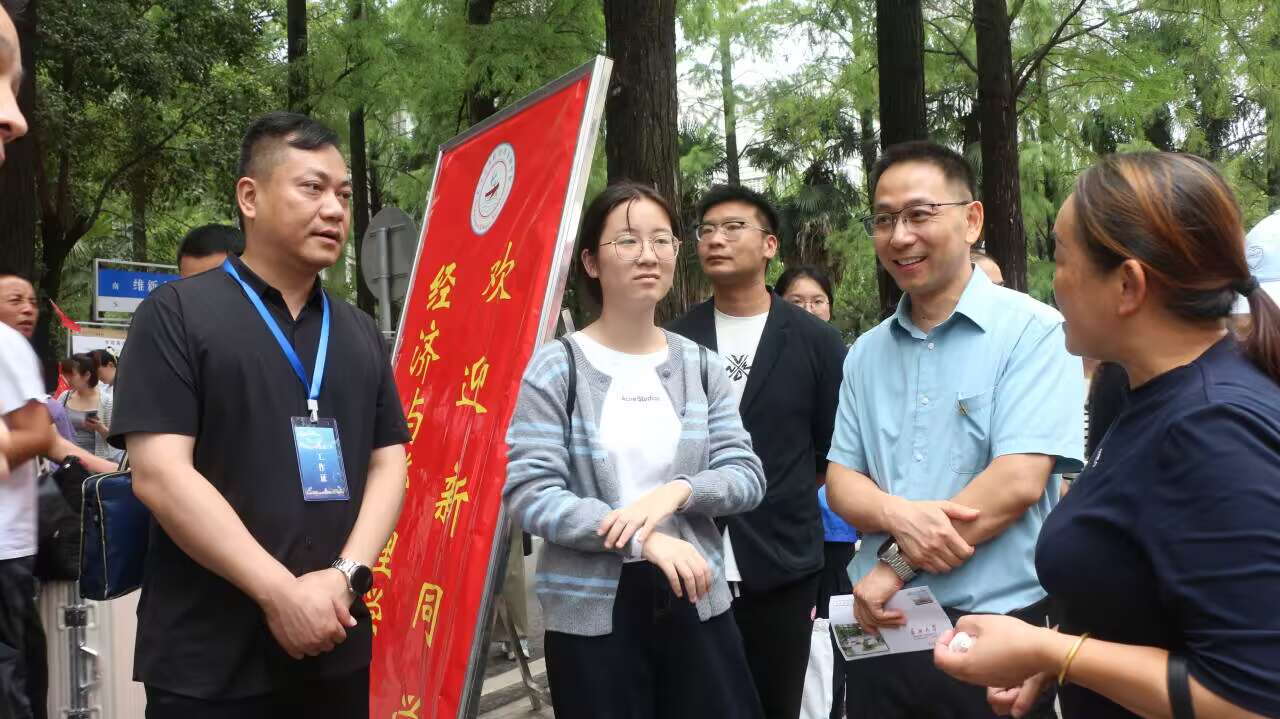 公司领导与新生及家长亲切交流,详细询问入学流程办理情况与对校园环境的适应度,耐心倾听需求、解答困惑,勉励新生“在探索中增长学识、在实践中锤炼品格,努力成为有理想、有本领、有担当的经管学子”。