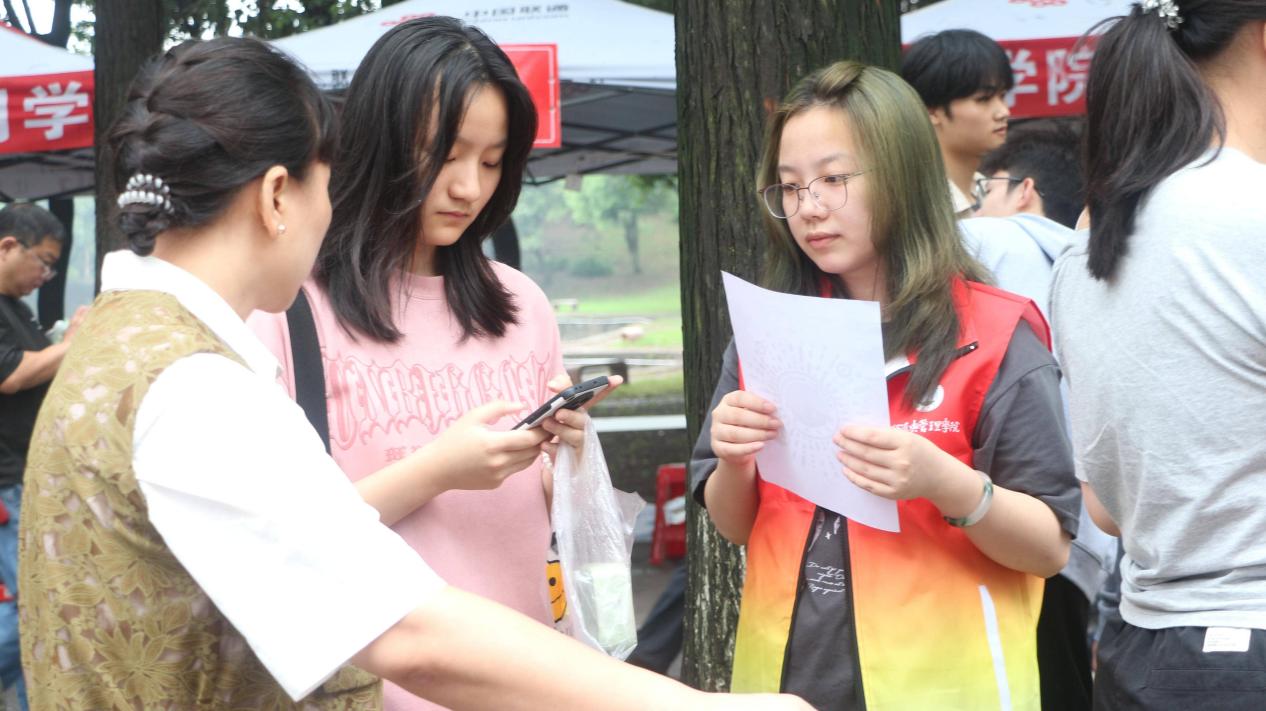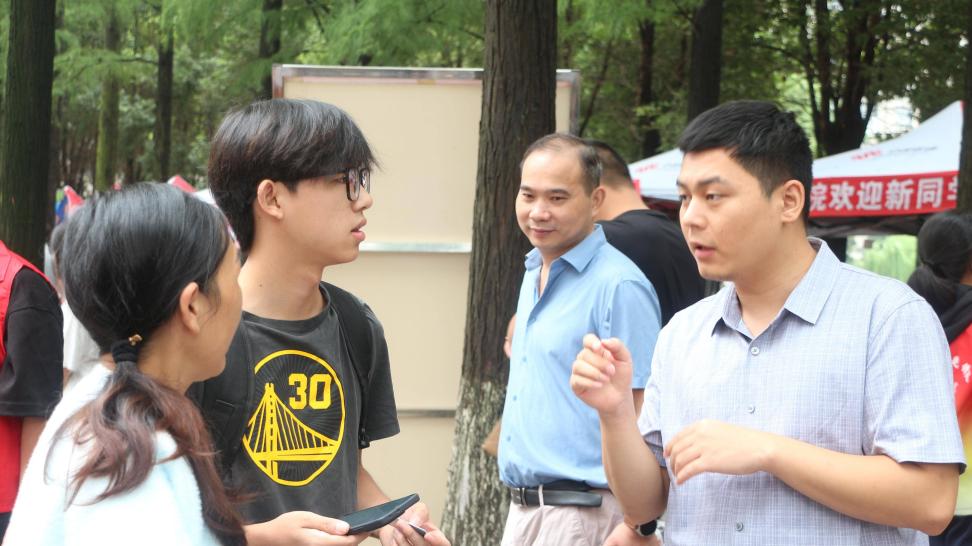 公司辅导员郭俊、李云妮、杨雪、李镇、娄君庭和班主任老师全程值守,从专业介绍到生活建议,细致解答着新生和家长的疑问,用严谨与温情为新生保驾护航。