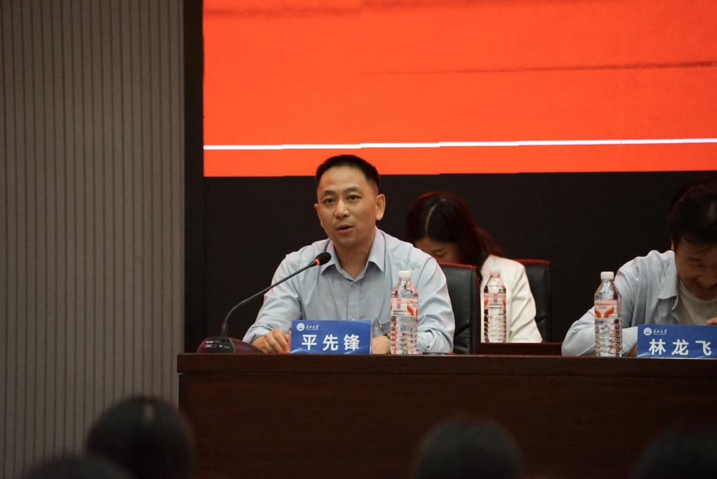 接着进行的是新生入学教育大会。辅导员郭俊老师围绕“适应、规划、成长”核心展开分享:鼓励新生主动调整心态,尽快适应高中到大学在学习模式、生活节奏上的转变,积极熟悉校园环境与课程体系,在与师生的交流互助中融入集体;同时强调要树立规则意识,自觉遵守校纪校规,做好学业与生活安全防护。