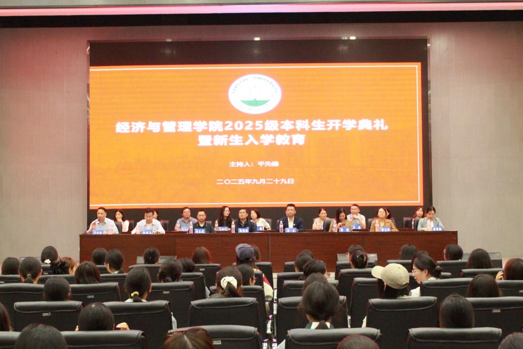 (通讯员 张丽)9月29日晚上7时,太阳成集团tyc151在西校区农科大楼1058报告厅举行2025级本科生开学典礼。经理陈承、副经理裴潇、副经理何蒲明、管理系主任盛艳燕、会计系主任康玉梅、经济系主任刘玉成、农经系主任林龙飞、学工办主任叶星、院分团委书记杨雪、2025级全体新生班主任老师及2025级辅导员郭俊、李云妮出席典礼。典礼由公司党委副书记平先锋主持。