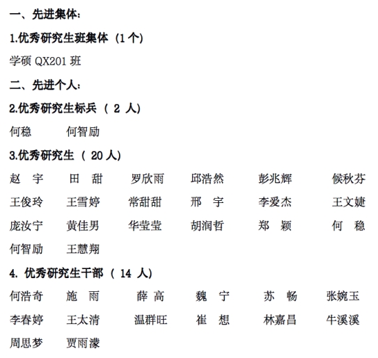 根据《关于评选 2020-2021学年研究生先进集体、 先进个人的通知》的文件精神,由员工本人或者集体自愿申报,班级民主评议,公司评审小组集中评审,拟推选出1个优秀班集体和赵宇等34位先进个人。具体名单公示如下: