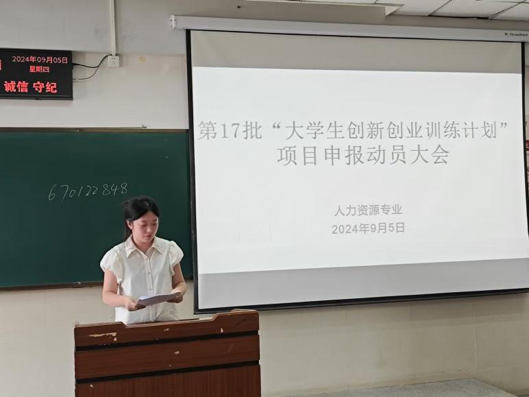 (通讯员:雷宇,翁文先)9月5日下午,人力资源管理部分专业老师和人力资源管理专业22级和23级近百位同学在12教203召开“第17批老员工创新创业训练计划”项目申报动员大会。