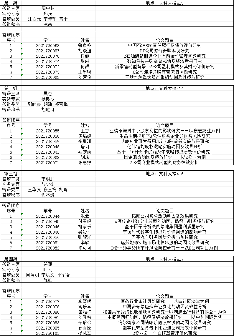 二、答辩分组安排: