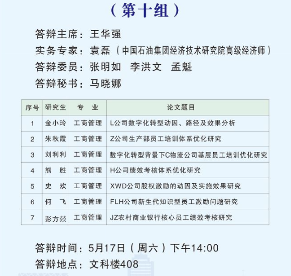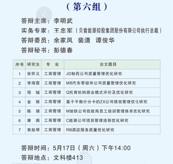 根据公司研究生教育管理工作安排,2025届MBA硕士研究生学位论文答辩工作于2025年5月17日举行。