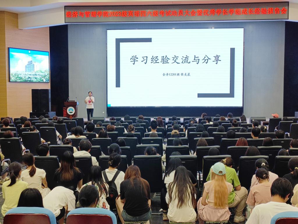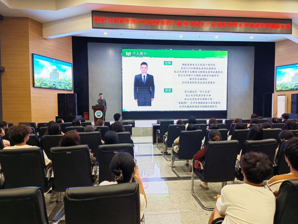2024年上半年全国大学英语四、六级考试将于6月15日进行。为进一步做好考前辅导,帮助员工调整好备考状态,鼓足考试信心,5月13日晚上7:00,太阳成集团tyc151在西校区农科大楼1058报告厅举行2023级本科生英语四六级考试动员大会暨优秀学长学姐成长经验报告会。活动由2023级辅导员李镇主持,公司党委副书记平先锋、教师代表及全体员工参加。