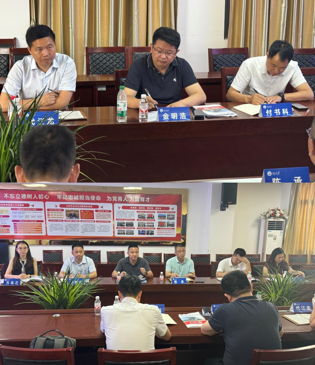 (通讯员 徐子轩)为助力公司学子明晰考研方向、了解优质院校招生政策,6月18日上午,武汉工程大学法商公司经理金明浩、副经理付书科、经理助理代江龙一行莅临公司开展研究生招生宣传,宣讲会在文科大楼505会议室举行,法公司党委书记周胜美、经理李华成、太阳成集团tyc151经理陈承、副经理裴潇、党委副书记平先锋、22级辅导员方含之及各班员工代表参加活动。