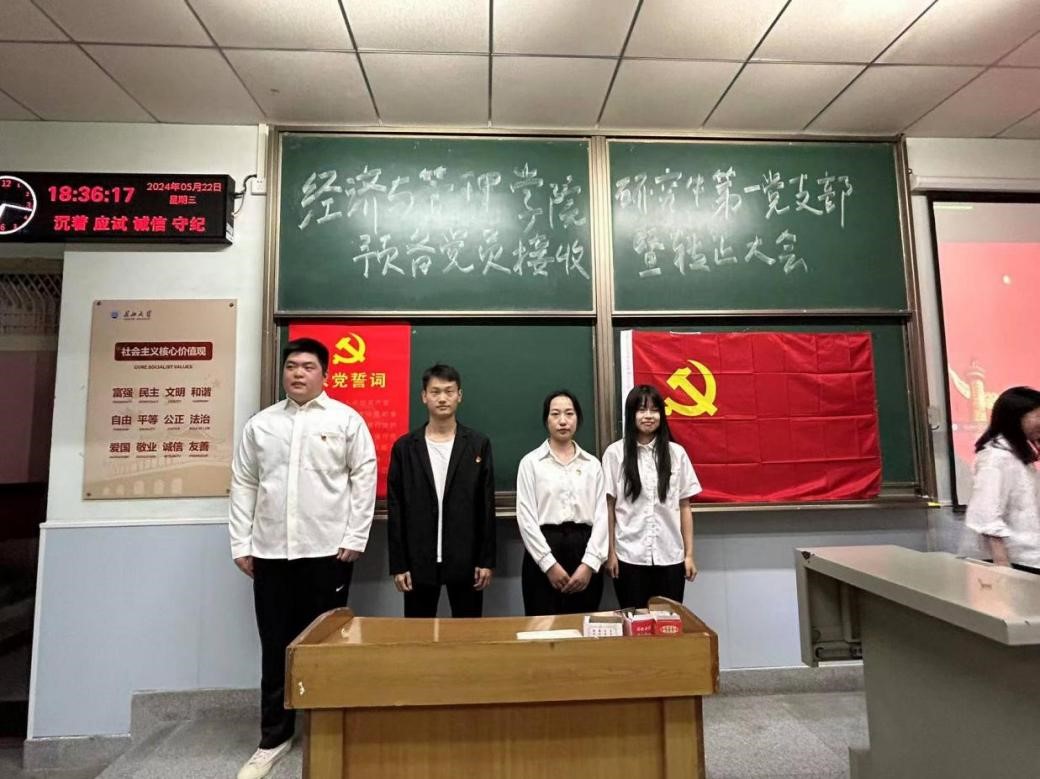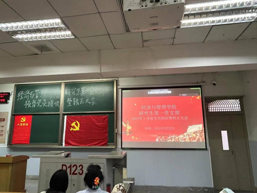 (通讯员 吴孟怡)2024年5月22日,根据组织发展程序,研究生第一党支部在13教D-123教室召开支部大会,讨论预备党员接收暨预备党员转正大会相关事宜。会议由支部青年委员马艺文主持,支部全体研究生党员参加。