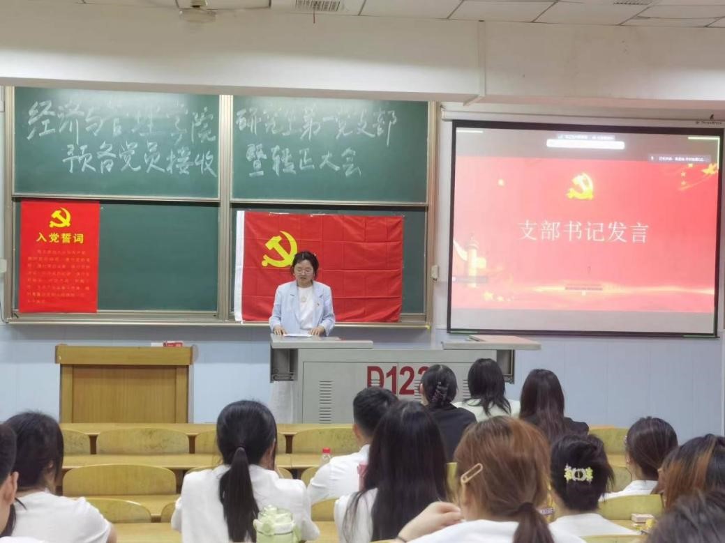 会议第五项:支部书记发言。首先,支部书记任玉婷对以上八位同志表示热烈祝贺和欢迎,肯定八位同志在作为发展对象、预备党员期间的优秀表现,鼓励他们继续保持初心,始终以优秀党员的标准激励自己,努力学习、不断进步。最后,她要求支部全体党员同志要自觉加强政治理论学习,认真学习并贯彻《中国共产党纪律处分条例》,坚持用《条例》来严格要求自身,积极在学习、生活和工作中发挥党员的先锋模范作用。