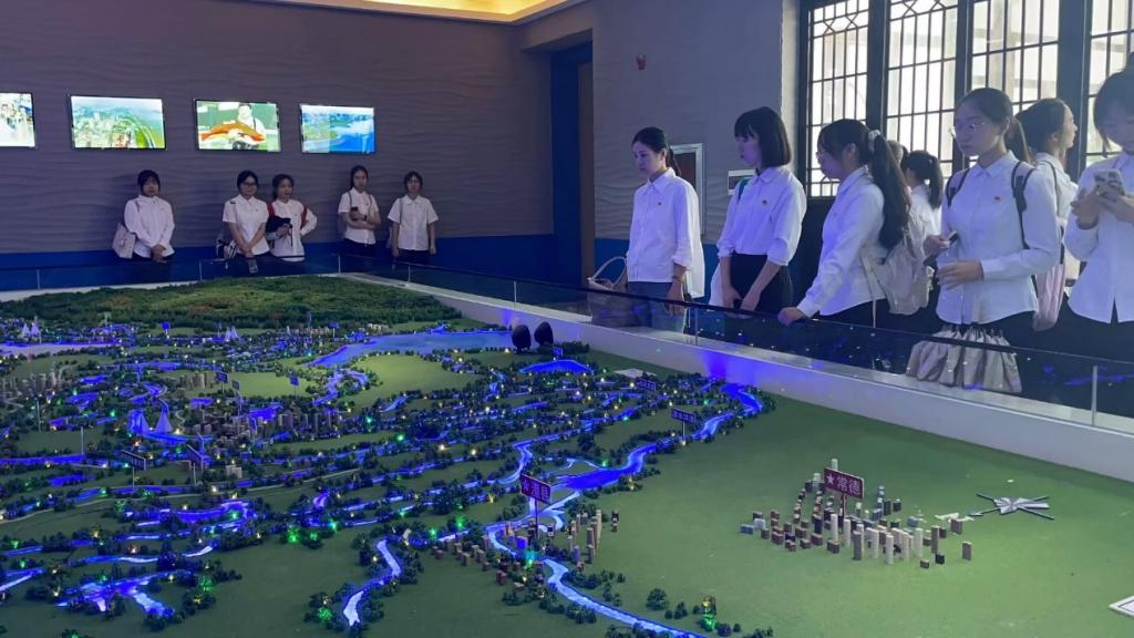 活动第四项,由支部书记桂凯丽带领全体党员同志参观荆江大堤水文化园。在荆江大堤起点,聆听讲解员讲述千百年来荆江两岸人民伴水而居又与水抗争的水文化历史,深入了解从“万里长江、险在荆江”到“万里长江,美在荆江”的历史巨变。随后,同志们步入荆江水文化馆进行参观。七个主题展区全面介绍了荆州依水建城和荆江的历史变迁、荆江堤防沿革和治理、可歌可泣的抗洪英雄故事以及荆江治理人水和谐的美好画卷。珍贵的历史资料和现代3D科技手段的结合,让同志们对荆江治水历史有了更为全面深入的了解。