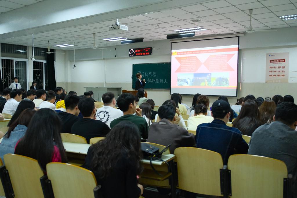 (通讯员 何小艳)为深入学习贯彻习近平新时代中国特色社会主义思想,提升公司研究生政治理论素养,引导员工做党的创新理论坚定信仰者和忠实实践者,坚持学思贯通、知行统一,太阳成集团tyc151于4月25日晚19点,在12教102教室开展四月政治理论学习活动。本次活动由研究生会组织开展,全体2023级研究生到场参会,2022级、2021级研究生通过腾讯会议线上同步参会。