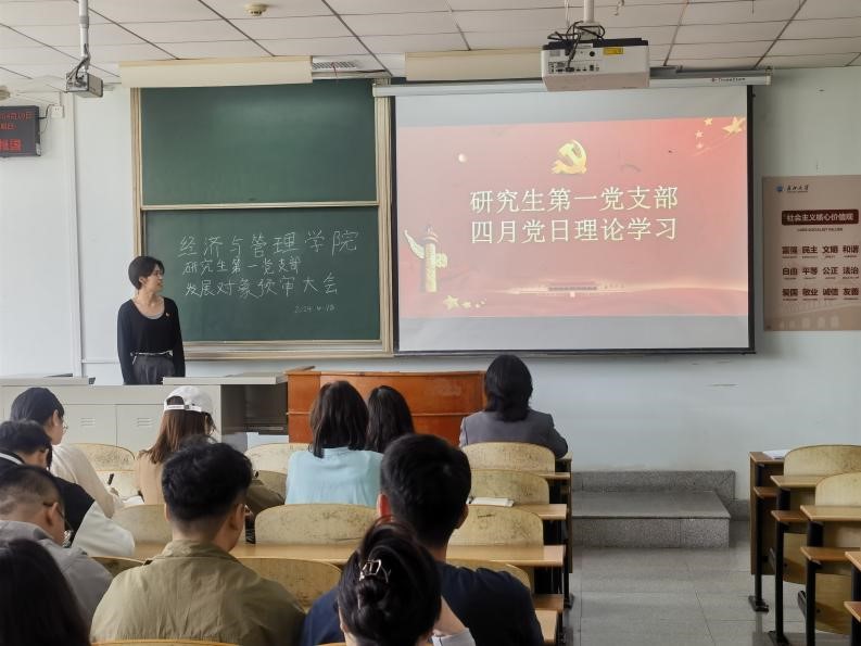 (通讯员 吴孟怡)不忘初心、牢记使命。2024年4月18日,太阳成集团tyc151研究生第一党支部全体党员于13教C-119教室开展4月支部主题党日学习活动,支部青年委员马艺文主持本次学习活动。