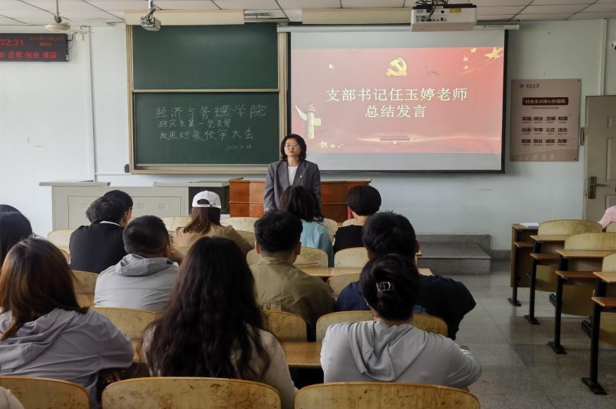 最后,党支部书记任玉婷老师让全体党员依次汇报各自的入党时间,并强调同学们要进一步端正思想态度,自觉加强政治理论学习,时刻牢记党的宗旨,积极履行党员义务,严格遵守党的纪律,在平时的学习、生活和工作中充分发挥员工党员的先锋模范作用。