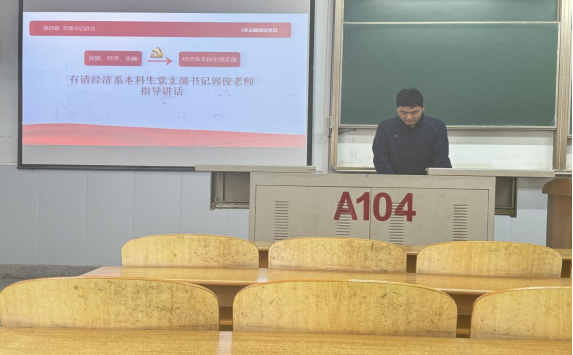 忆峥嵘岁月,庆党建伟业。2024年3月21日,经济系本科生党支部在东校区13教104召开三月主题党日活动。经济系本科生党支部书记郭俊、党支部部分党员参加了此次学习活动,活动由党支部副书记陈晋晋主持。