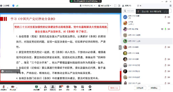 最后,朱梦雨同志带领同志们深入学习领会公司党委书记王建平在2023年度二级党组织书记抓基层党建工作述职评议会上的重要讲话,阐明“各级党组织要强化政治引领、加强组织建设、加强思想引领”等重要观点。