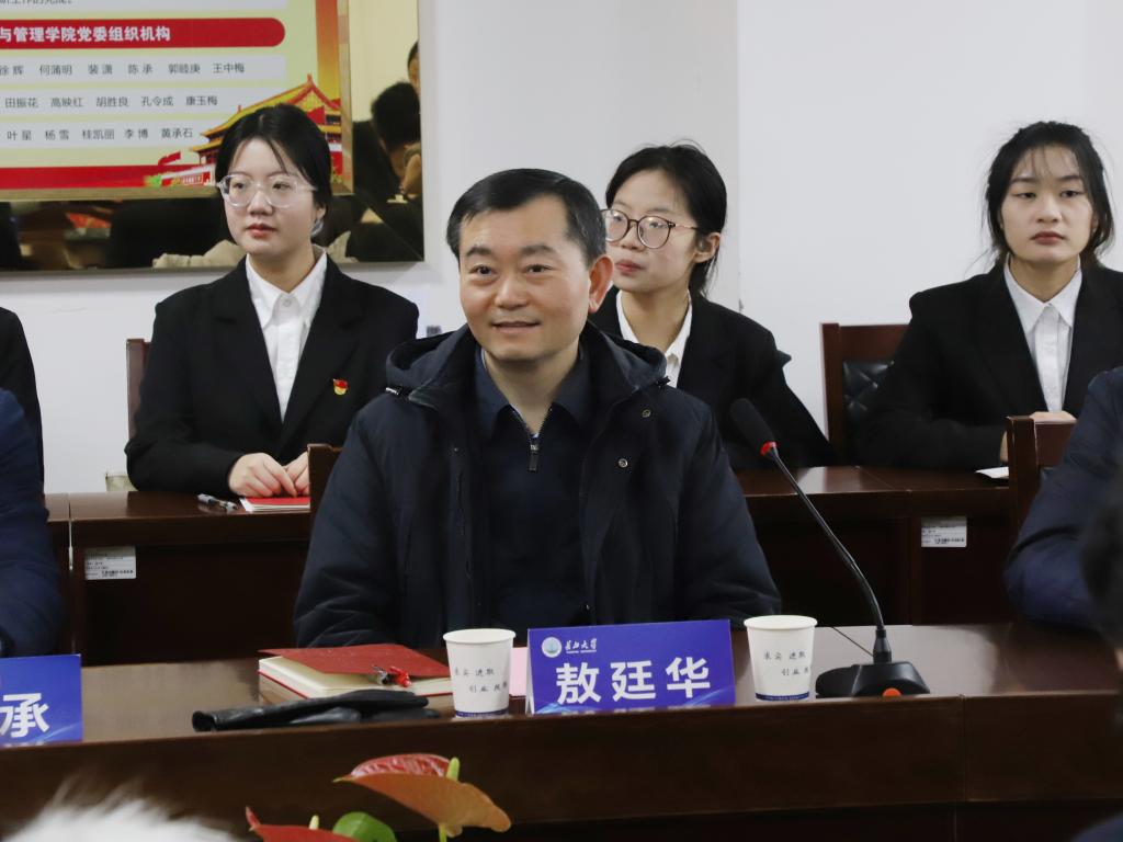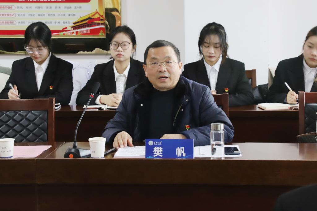 (通讯员 杨佳 朱梦雨 饶倩竹/文 涂雷/摄)凝心聚力,踔厉奋发。2023年12月21日,会计系本科生党支部在文科大楼505召开十二月主题党日活动。公司党委副书记敖廷华、公司党委书记樊帆、公司经理陈承、公司全体党支部书记、辅导员以普通党员的身份参加了此次学习活动,活动由公司党委副书记平先锋主持。