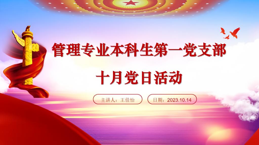 (通讯员:陈奕铭/文 胡若兰/摄)忆初心,强党性。为深入贯彻学习习近平总书记关于国家建设的新思想、新观点、新论断,全面系统领会其深刻内涵和实践要求,引领员工党员不忘初心,踔厉奋发,勇毅前行,将其贯彻落实到日常学习生活实际,管理专业本科生第一党支部于2023年10月14日在文科大楼505召开“学习重要讲话,领悟校园新风尚”主题党日活动。支部2020级、2021级全体党员同志参加活动。