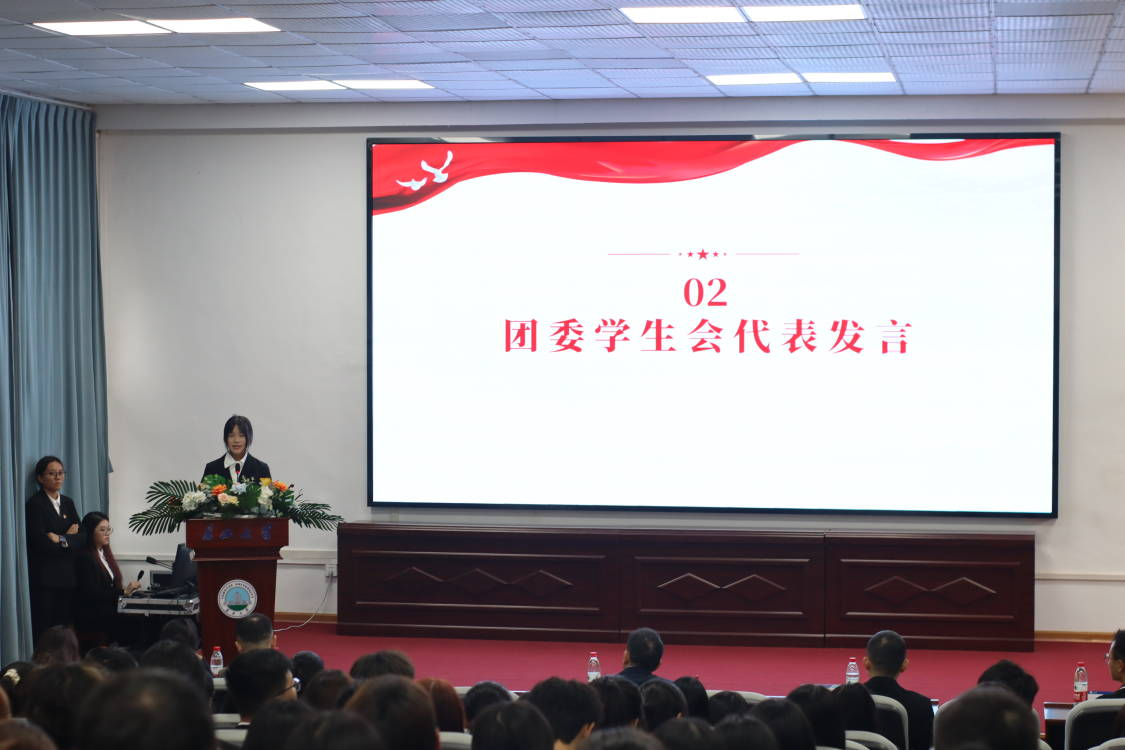 伴随着暖场音乐《有我》,大会在庄重肃穆的氛围中拉开序幕。会议伊始,综合事务部副部孙慧珂、组织部干事刘佳欢作为员工代表发言,他们明晰责任与义务,在汇报中做出庄严承诺。
