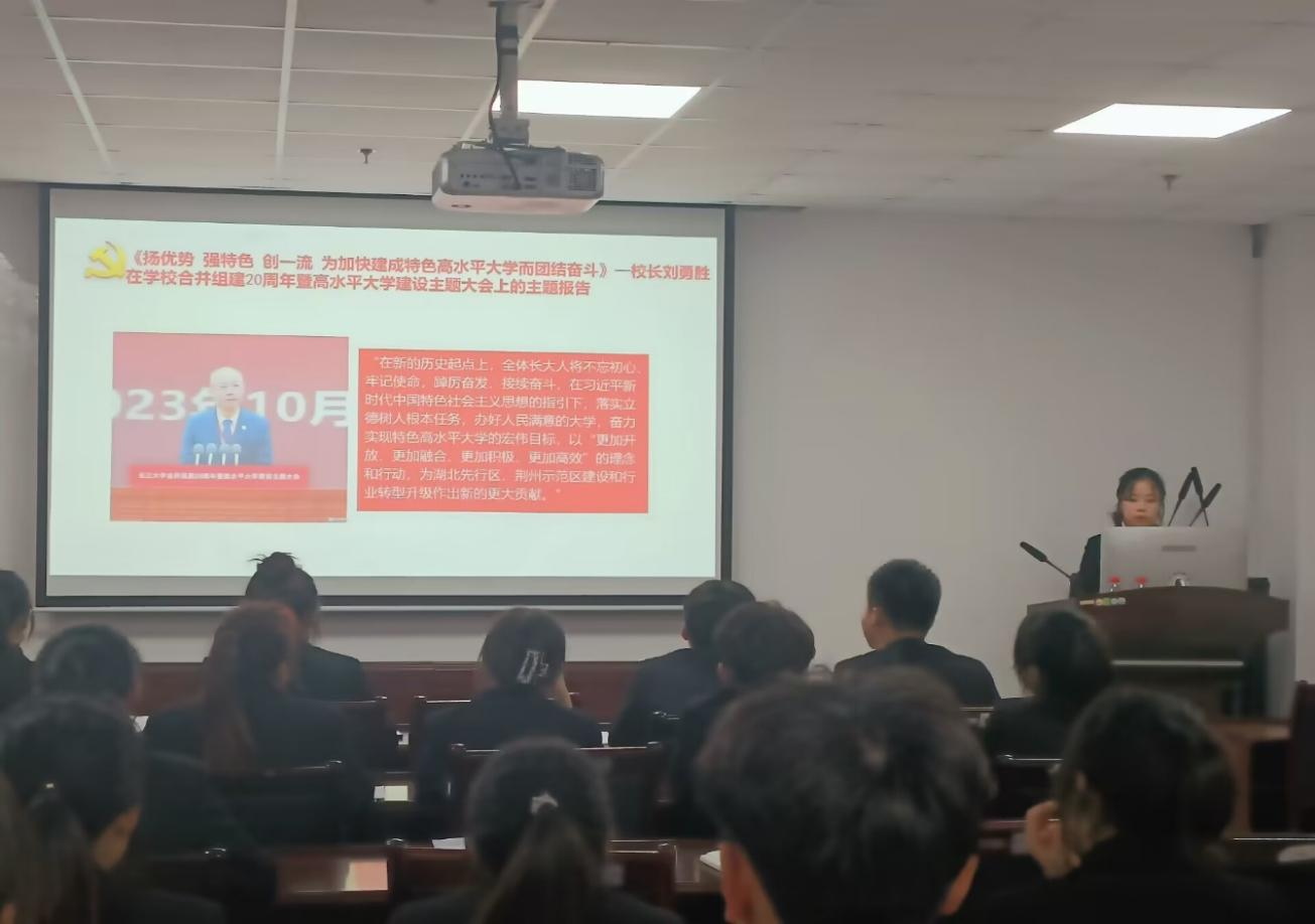 在活动的最后,俞钰婷同志着重对刘勇胜董事长在公司合并组建20周年暨高水平大学建设主题大会上的主题报告进行讲解。刘勇胜董事长强调:我们要把立德树人成效作为检验公司一切工作的根本标准,始终把人才培养质量放在首位,持续构建“育在长大”育人品牌,着力培养担当民族复兴大任的时代新人。