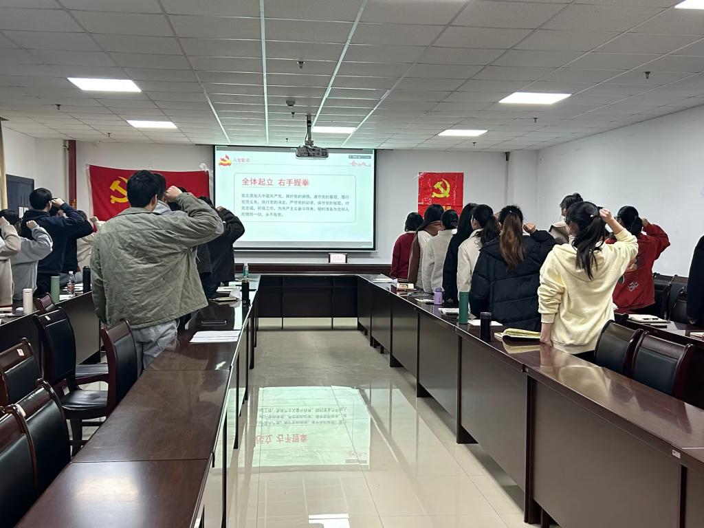 会议第一项由王乐乐同志带领支部全体党员重温入党誓词,把践行入党誓词作为党员终身必修课。