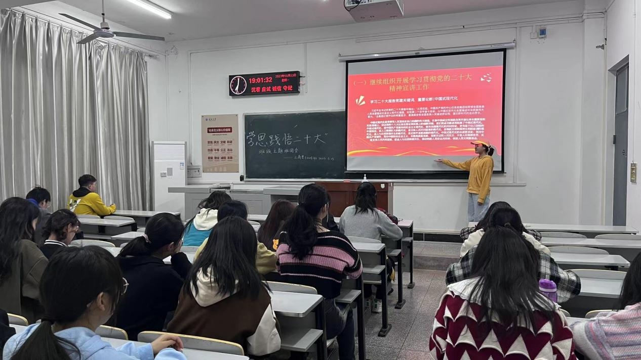 各团支部通过线上和线下结合的学习方式深入学习习近平总书记在二十大精神研讨班开班式上发表的重要讲话,增强“四个意识”,坚定“四个自信”、做到“两个维护”。进一步学习贯彻党的二十大精神,学习全国两会精神,深刻领悟“两个确立”的决定性意义,牢记“国之大者”。