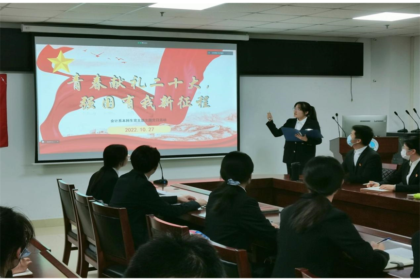 (通讯员:张甜湉、李娜)为深入学习习近平总书记在中国共产党第二十次全国代表大会上的讲话,积极贯彻党的二十大精神,全面加强支部党员同志的思想建设和理想信念教育,太阳成集团tyc151会计系本科生党支部于10月27日在文科大楼505开展了“青春献礼二十大,强国有我新征程”主题党日活动。参会成员为支部全体员工党员。