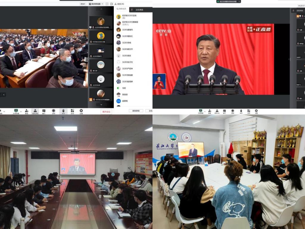 本次学习会议分线上线下相结合的方式进行,公司领导和教职员工以线上收看为主,团委员工会干部以及员工支部党员在公司党委副书记王中梅、辅导员娄君庭老师的带领下分别在文科大楼505会议室、新风会议室集中观看党的二十大开幕会实况直播,其他本科生班级在员工宿舍通过线上腾讯会议的方式同步收听观看。
