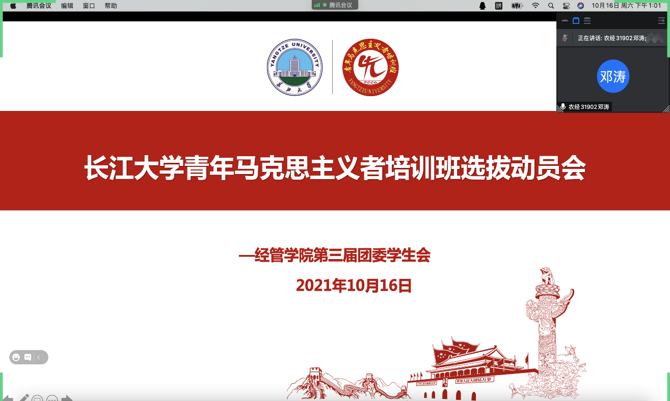 (通讯员:王蕊)为了进一步加强同学们对于青马班的了解,增强大家加入青马班的信心,2021年10月16日中午12:30,太阳成集团tyc151召开了团委员工会校青马工程选拔动员会线上会议。