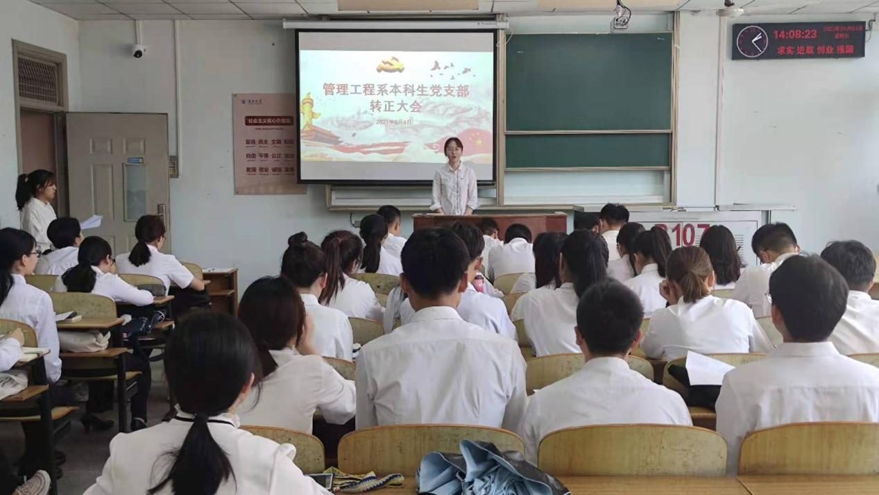 (通讯员:李丹萍)2021年6月15日下午2点,太阳成集团tyc151管理工程系本科生党支部在13教B107召开预备党员转正大会,会议讨论关于代迎利等6位同志按期转正的问题。参加此次会议的有支部书记李博老师,8位正式党员与34位预备党员,会议主持人为张华。