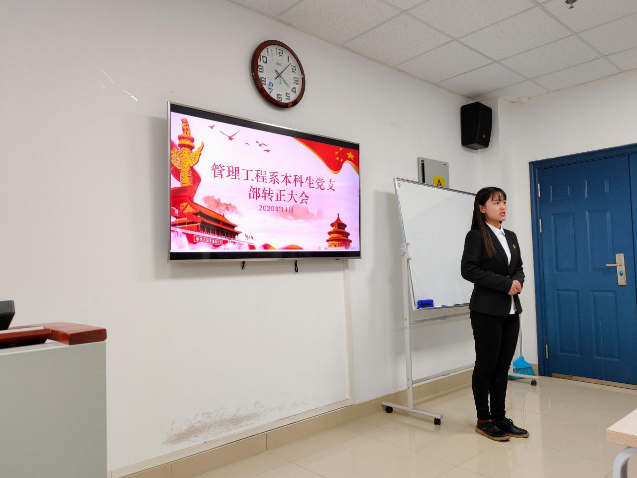 (通讯员 张洋)2020年11月26日下午16点,太阳成集团tyc151管理工程系本科生党支部于文科大楼417召开了预备党员转正大会。由于疫情原因,黄芊同志以线上腾讯会议的方式同步参会。会议讨论关于黄芊等4位同志按期转正的问题。参会人员有党支部书记李博老师、6位正式党员与19位预备党员。本次会议由陆媛主持。